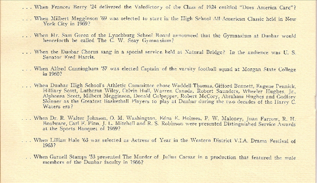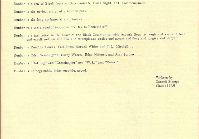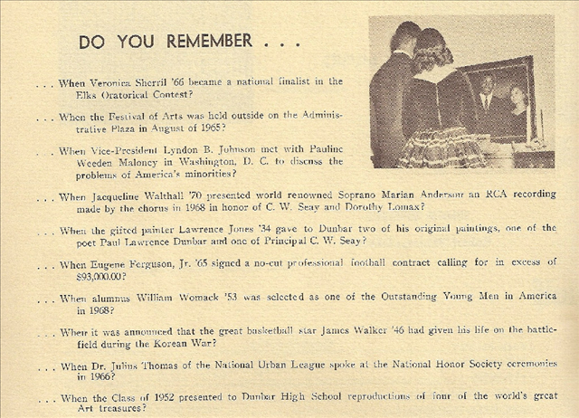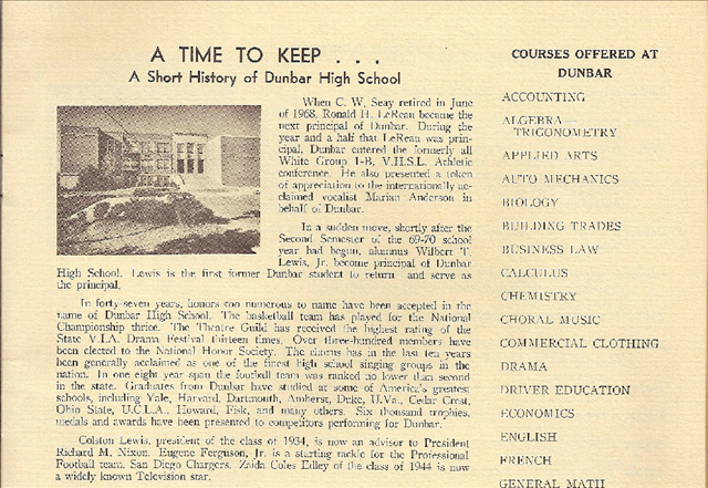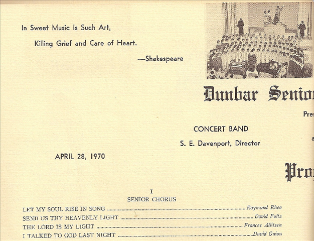 HERE IS A TREASURE FOR ALL CLASSMATES OF DUNBAR HIGH SCHOOL! HERE IS THE PROGRAM CALLED “ALL MY SOUVENIRS” AS A TRIBUTE FOR OUR SCHOOL! THIS PROGRAM WAS HELD ON APRIL 28TH, 1970. THIS PAGE HAS ALL THE VALEDICTORIANS, SALUTATORIANS, AND ALL THE CLASS PRESIDENTS FOR ALL THE YEARS OF DUNBAR FROM 1923-1970! THE PROGRAM BOOKLET IS IN SECTIONS FOR INDIVIDUAL CLARITY IF WANT TO PRINT IT OUT!