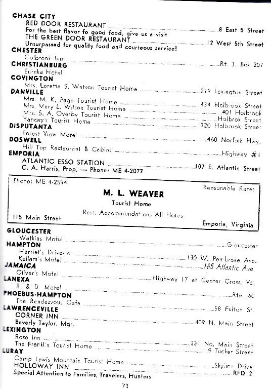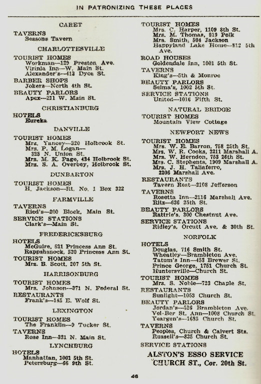 I GOT A COPY OF THE NEGRO TRAVEL GUIDE “THE GREEN BOOK!” THE BOOK IS THE BASIS OF THE AWARD WINNING MOVIE OF THE SAME NAME! I HAVE INCLUDED THE BIOGRAPHY OF VICTOR GREEN, THE AREAS YOU CAN STAY IN THE STATE OF VIRGINIA, AND LOCAL PLACES AROUND LYNCHBURG! THIS IS THE 1940 EDITION BELOW IS THE 1963-64 EDITION!