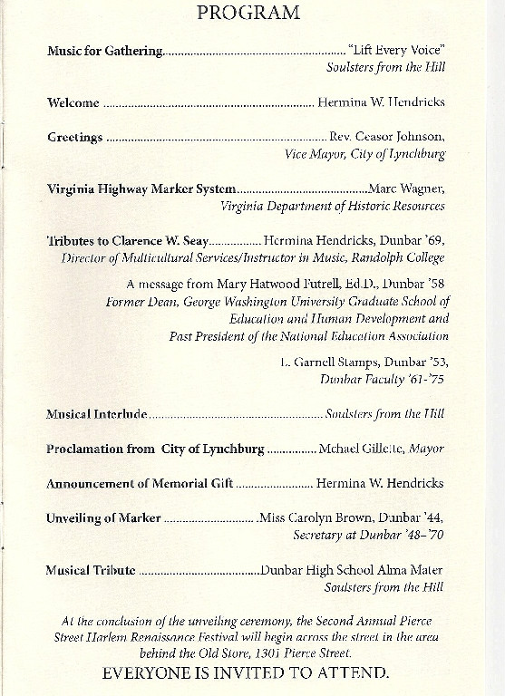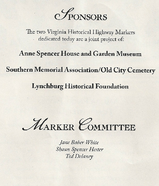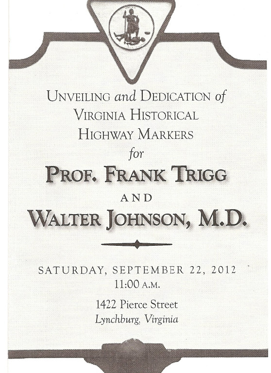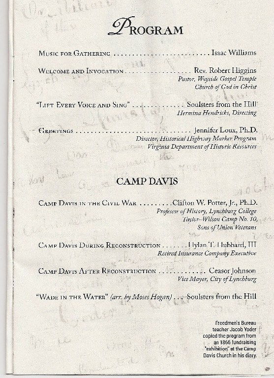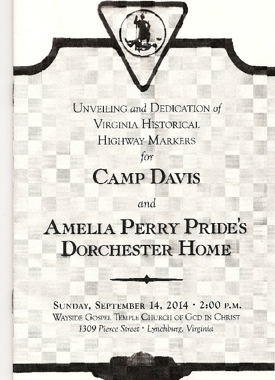 HERE IS THE PROGRAM FOR THE UNVEILING AND DEDICATION OF THE VIRGINIA HISTORICAL MARKER CELEBRATION HELD ON SUNDAY, SEPTEMBER 14TH, 2014